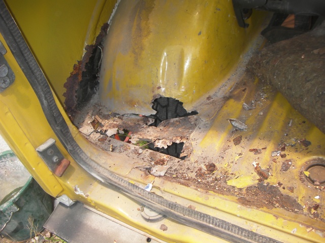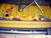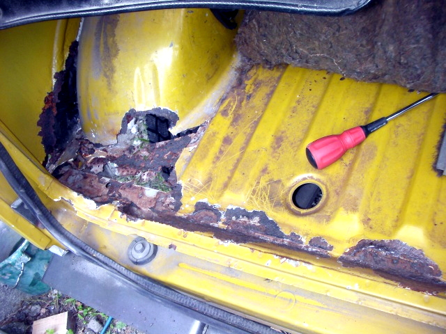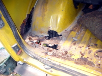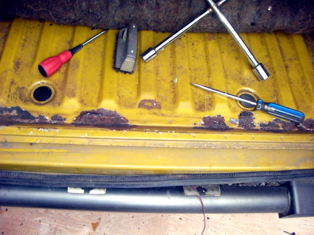 | そして、リヤゲートの修理を始めたら、左後部の床が腐って抜けてるのが気になって、こっちもこの機会に少し補修する事にした。 |