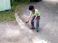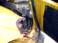 ここ(左後)は、完全に抜けてるので、FRP張って補修する事にする。 |