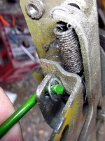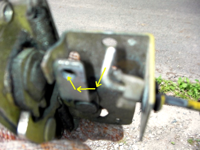 | で、この穴にフックを差し込んで抜けなくなるようにすれば良いようなので、外して、切り込み入れて、Eクリップで留める事にする。 |