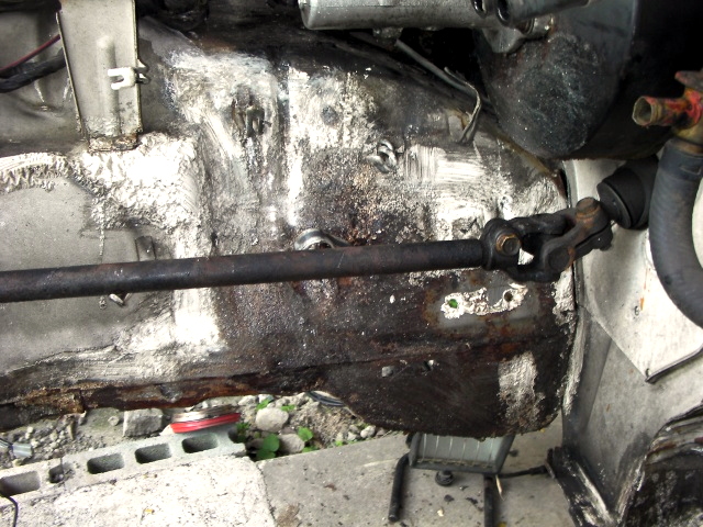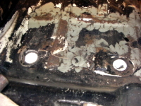| 【15:00】エンジンルーム右側の下あたり(ブレーキマスターシリンダーの下)が、結構錆びてる。 |