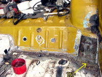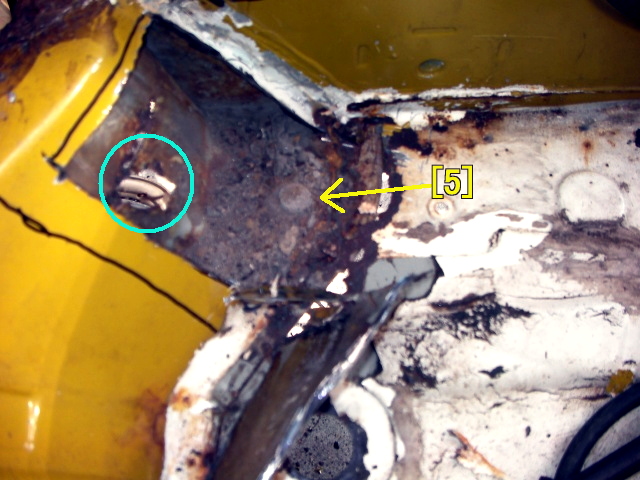 | 運転席前方裏側あたり(ボディマウント[4]あたり) |