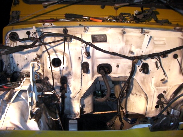 結局、塗装の邪魔なのでブレーキのマスターシリンダー等を外す。 |