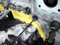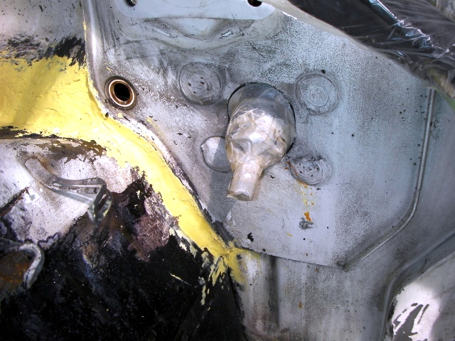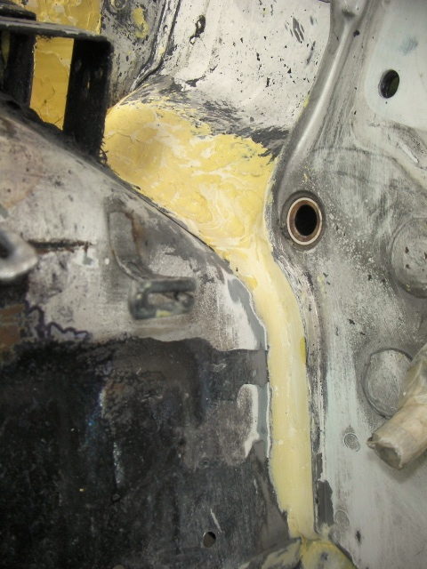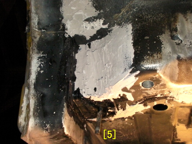 明日のパテ埋めのため、少し削って錆置換剤塗布 |