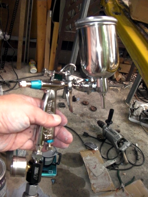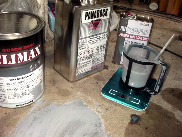 プラサフは、当家の古い、もっと口径の大きいガンで吹く予定だったけどノズル詰まってて...... |