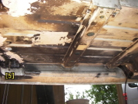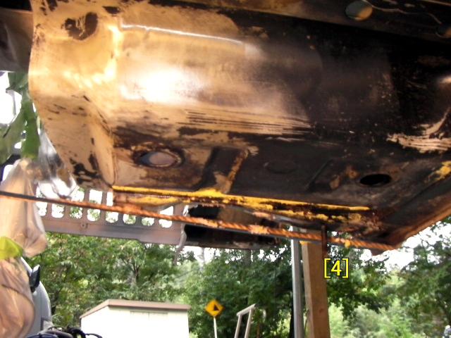 ミッショントンネル(斜線部)は、エンジンルームと同色で塗り、他は厚塗りアンダーコート(NX43)を塗る |
