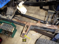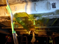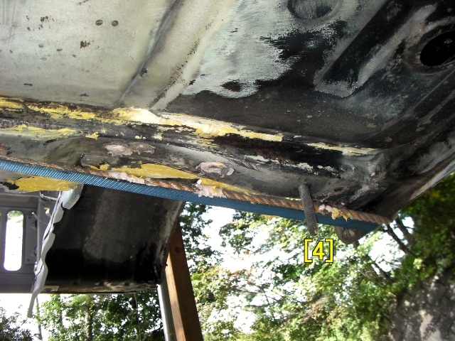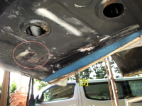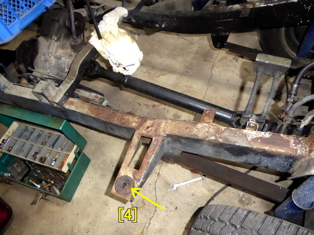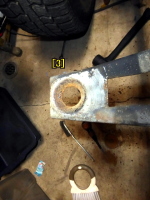 ボディマウントのブッシュ外したら、[4]の部分が崩落して大穴 また熔接補修しなければ... |