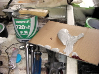 プラサフを少しだけ研磨して、とどめのパテ埋めしてエンジンルーム内の塗装。