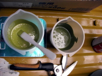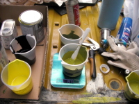 何度か配合替えて、イエロー2%、ブラック98%で、結構綺麗なイエローグリーンとなった。