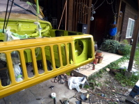 事前にタミヤカラーで色合わせし(笑) イエロー5%、ブラック95%で現車の色に近くなったんだけど.....