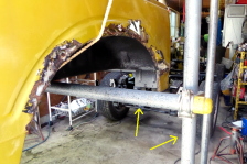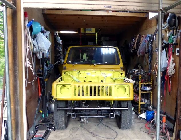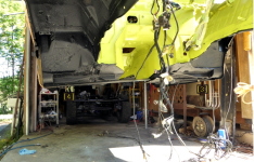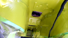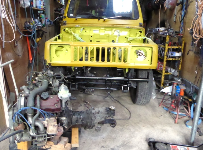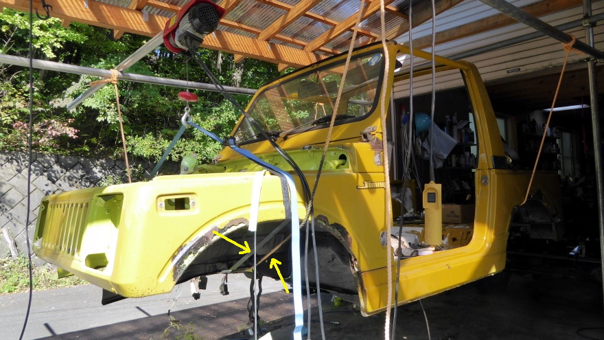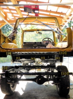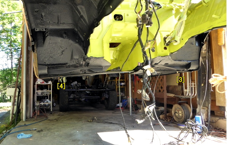 ボディ下の最終塗装、ボディとフレームの合体等