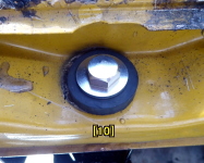 | 【13:47】ボルトは純正ではなくステンの10x1.25x30mm、と10.5x 30.0x 3.0tの丸ワッシャー |