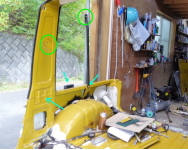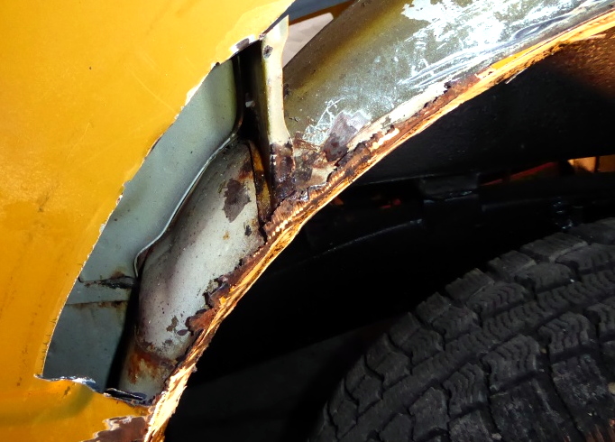 左リヤフェンダーの修復作業。 |