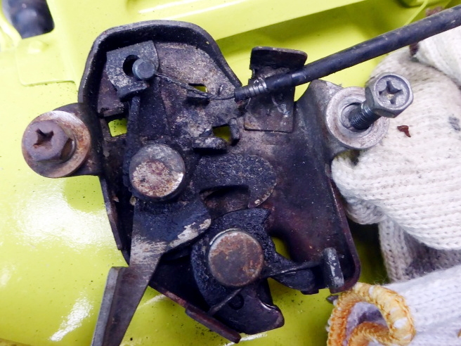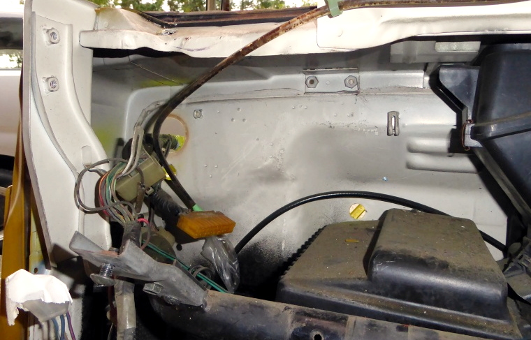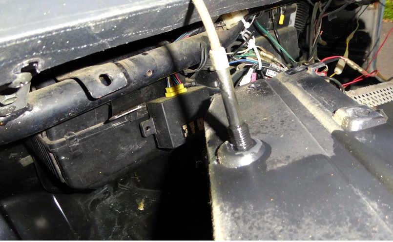 グローブボックス裏のボンネットキャッチのケーブルのコネクタが中々外せず、結構時間掛かった。 |
