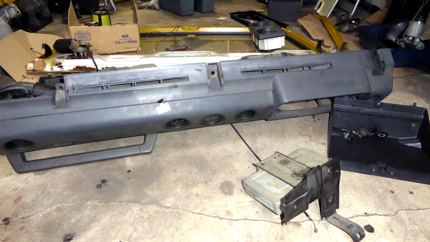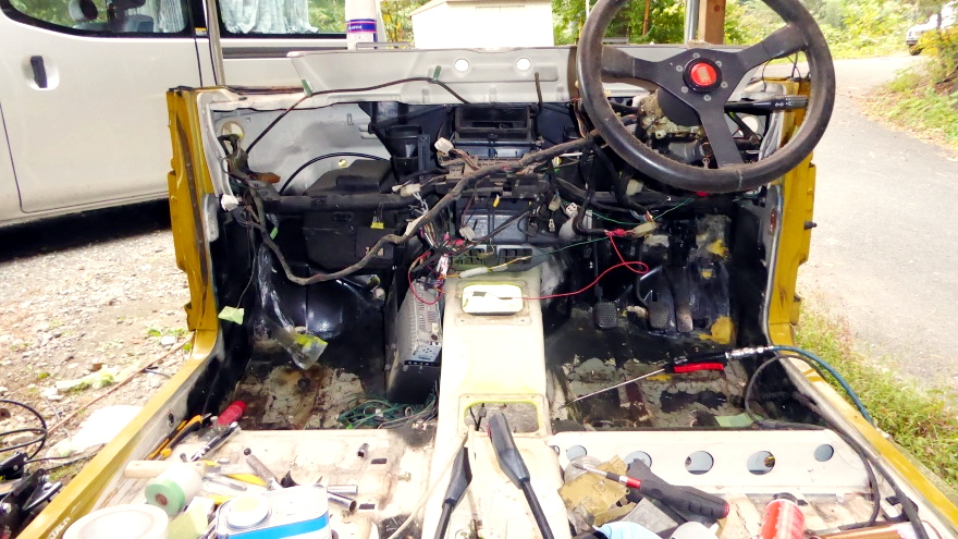 フロントウィンドー、ピラー、ダッシュボードを外す。