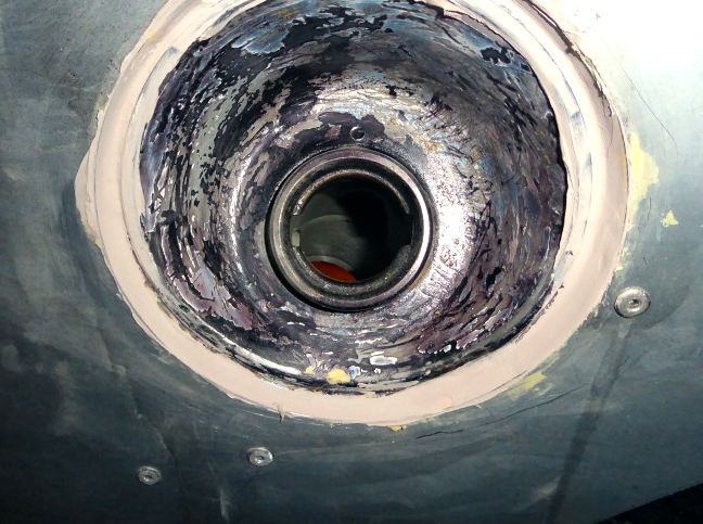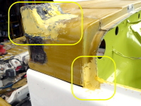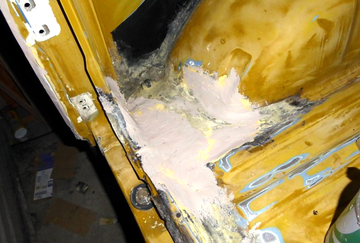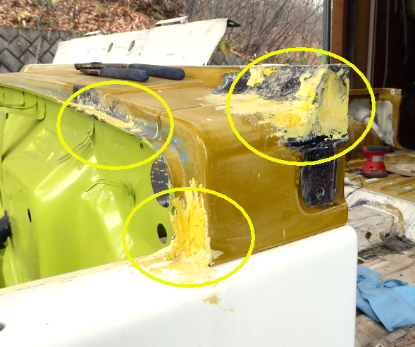 厚付けパテの研磨後、薄付けパテ塗布。 |
