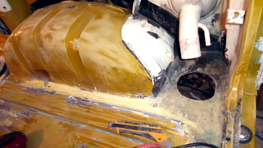 | 再生後は、カーペットレス仕様なので、床も概ね露出になる。って事で、そこそこの塗装下地を作る。 |