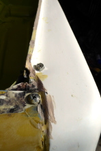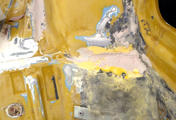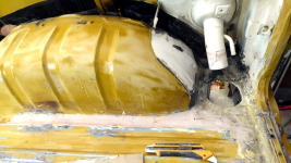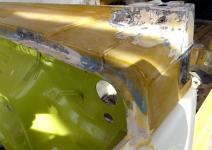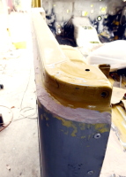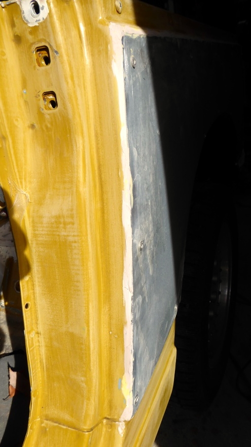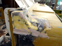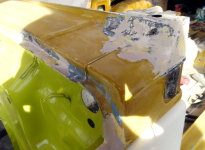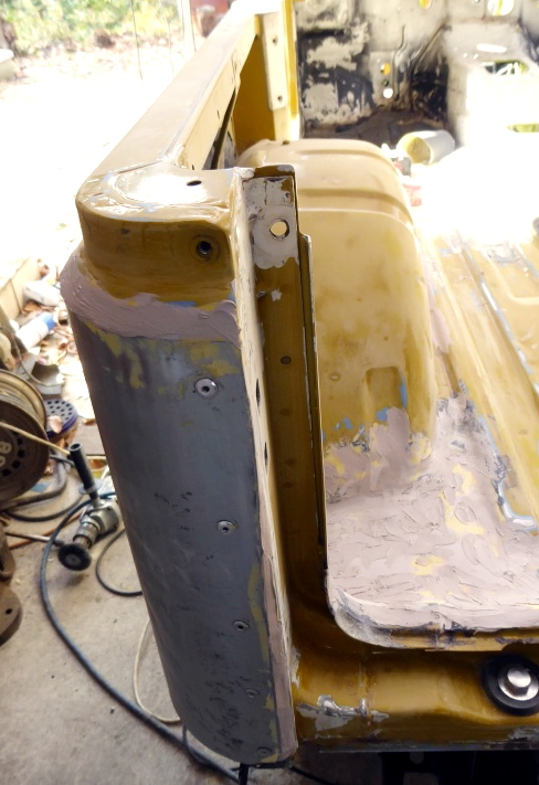 | 【9:41】本日の作業前、前回は、薄付けパテ(中目)を盛ったトコで終了。 |