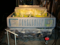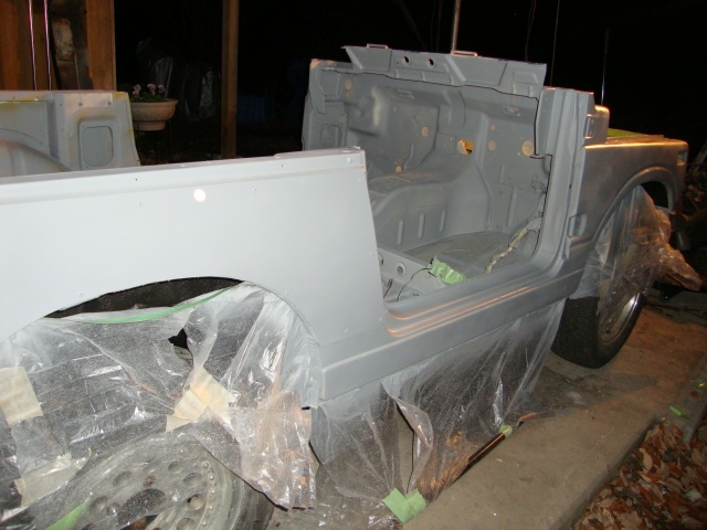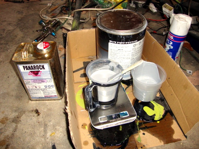 | 【18:13】風強くて寒くて暗い中、プラサフ1回目塗装終了。後で見たら、薄かったりタレてたり(^^; |