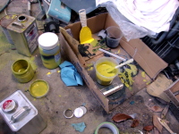 【15:08】上塗り準備。今度はゴミ取りに、20うん年前に買った、タッククロスを使う(笑)