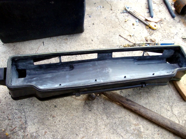 前回、旧塗膜の剥離をした、室内への空気取り入れ口内の塗装。 |