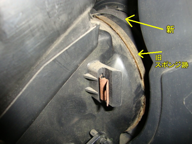 位置合わせしたら、意外と大きい隙間が空いて、劣化して崩れ廃棄したスポンジの、代わりになるもの必要になった。で、余ってる赤ちゃん用のスポンジテープを流用(笑) |
