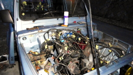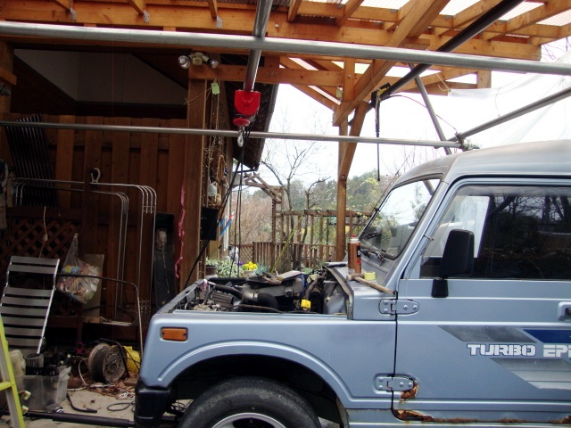 4/9(日) 本日は、メインハーネス外して、ラジエター廻り・トランスファー外して、エンジンを降ろす準備。