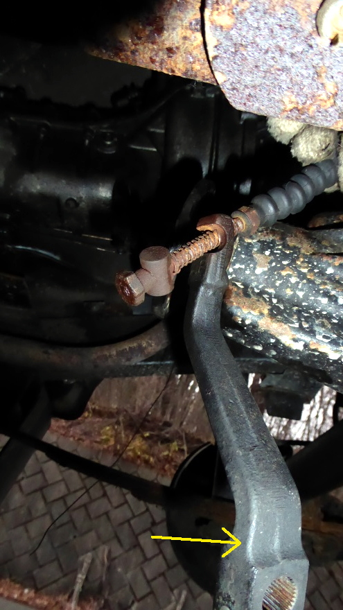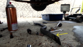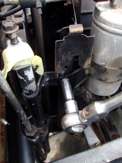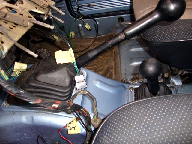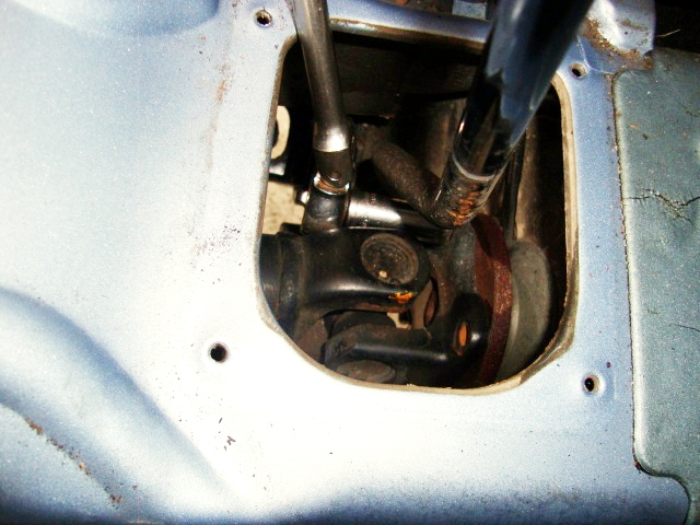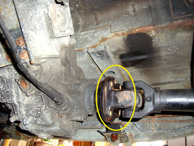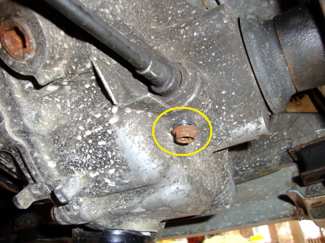 | トランスファー前側のドライブシャフト上部のボルトは室内から外す。 |