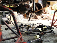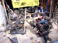 4/16(日) 本日は、車体後部のメインハーネス外して、エンジンを降ろし、タイミングベルト等の交換準備。