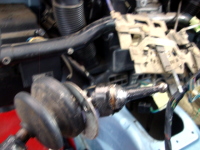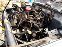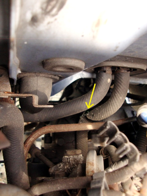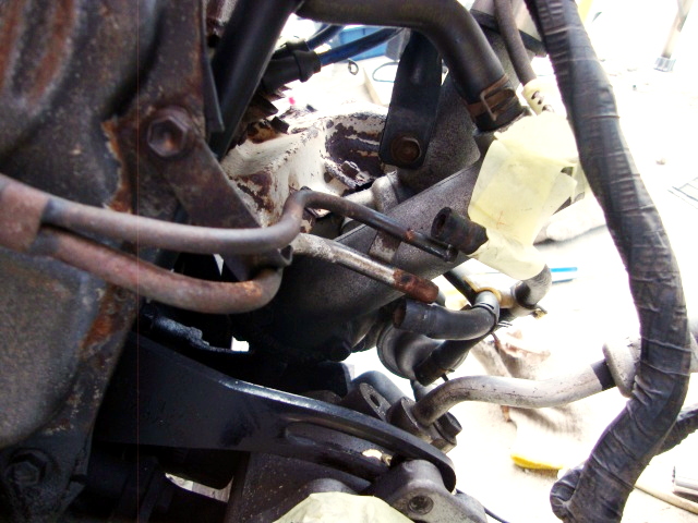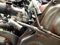 | 次は、エンジンルーム内の残りの配管の取り外し。ヒーターホースは再利用しないので切断。 |