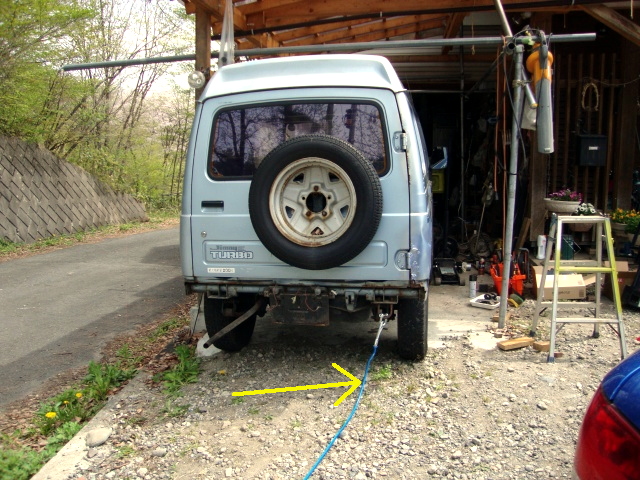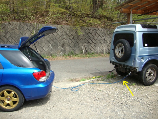 | さて、5号の退場作業。エンジン載せただけで、ブレーキしか効かないので、当然牽引で(笑) |