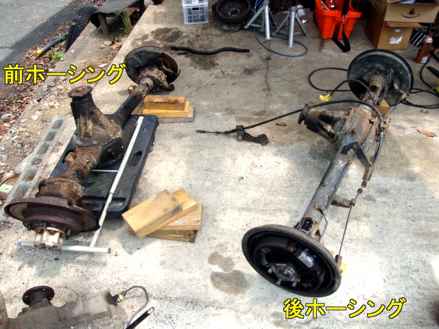 | 次は、5号から外した前後ホーシングを高圧洗浄してから分解。再組み立て用に、たくさん撮影しとく。 |