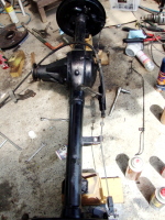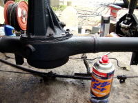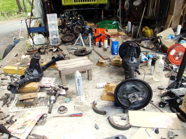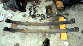 次は、3号のリヤのリーフスプリングを錆落しして塗装、そしてウレタンブッシュへの交換のために取り外し。