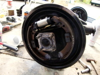 次は、左リヤブレーキ。右側は、減ってもいないのにシュー外して、組み付けに難儀したので、