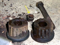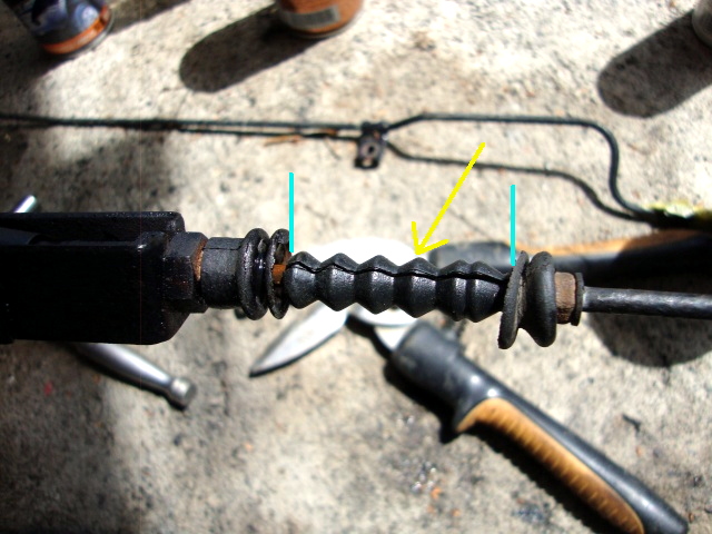 ナット側からハンマーで叩きまくって、カラーを潰してやっとぬけた |