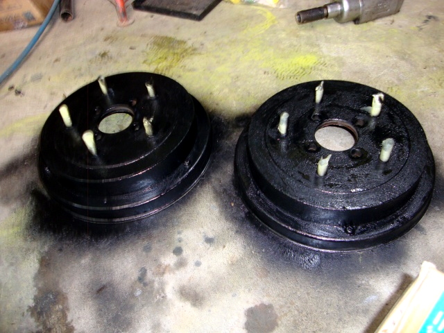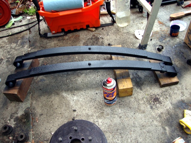 | まずは、前回からの続き。フロントリーフスプリングの裏側と、リヤのドラムブレーキの塗装。 |
