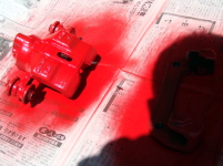 | 左側は、全バラしてから清掃して、マスキングして塗装したけど、マスキングが結構メンドだったので、こっち側は、スライドのボルト周りは、このまま塗ってしまって(どうせ捨てるゴムパーツなので)塗った後でバラす事にした。 |