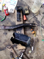 | 次は、トランスファーとミッションのステー、インタークーラーの遮熱板の清掃、錆置換剤塗布。 |