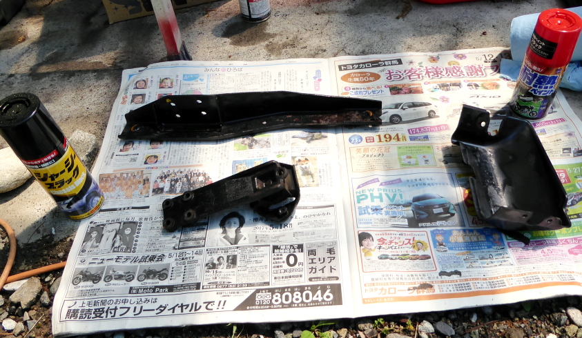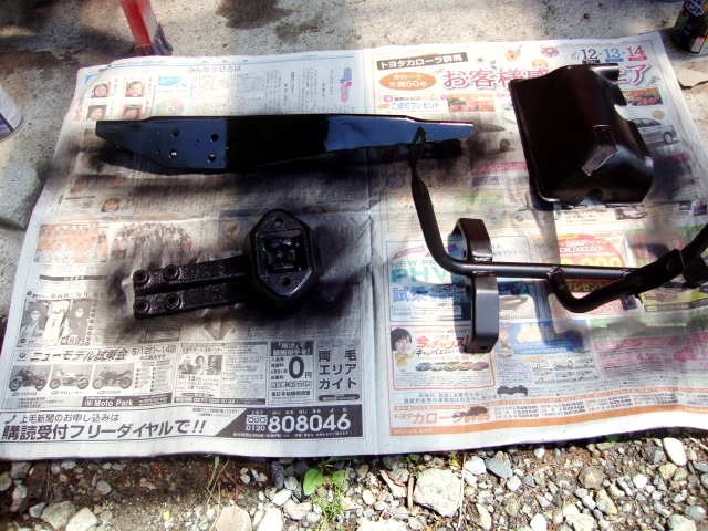まずは、錆置換剤塗ってあったステー類の塗装。