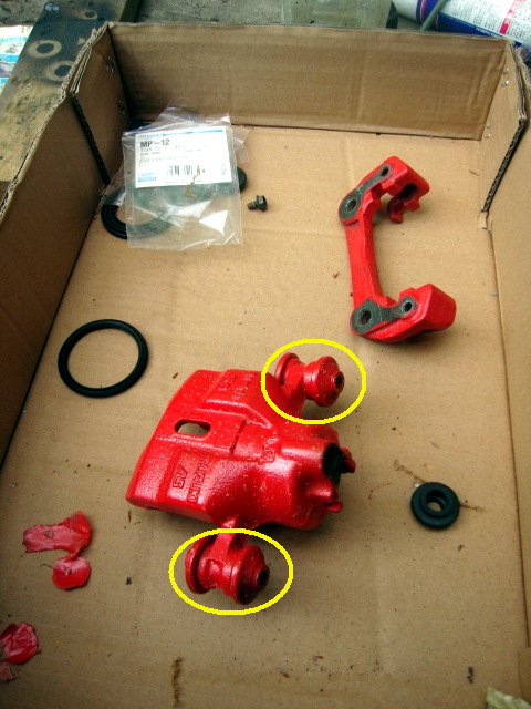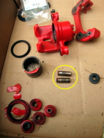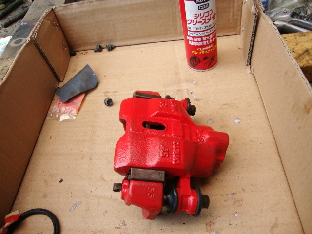 5/27(土) 本日は、ステー類の塗装の続きと、右のブレーキキャリパーのOHの続き