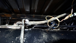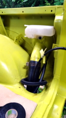 | まずは、マフラー付けると作業しにくくなるので、メインハーネスをフレームとボディの間に通す作業から。 |