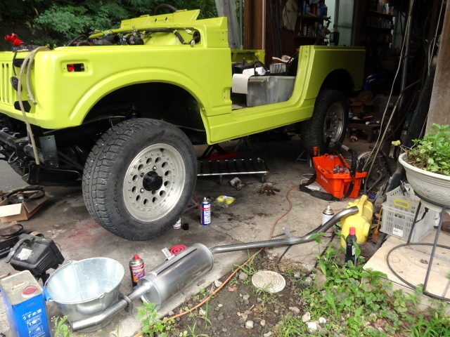 8/13(日)は、JA11のフロントパイプの熔接〜塗装〜取付など。