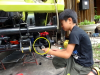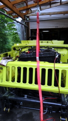 そんなに重い訳ではないが、ボルトの微妙な位置合わせもあるし、やっぱり吊った方が楽