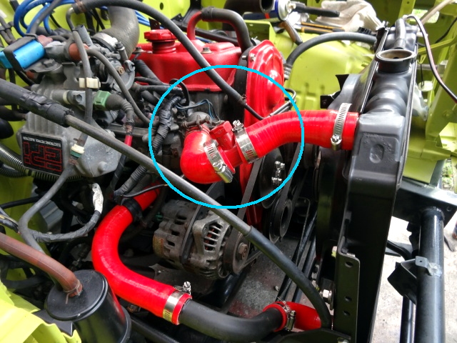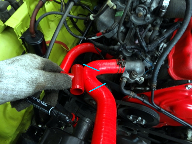 次は、ラジエターのアッパーホースの取付。