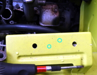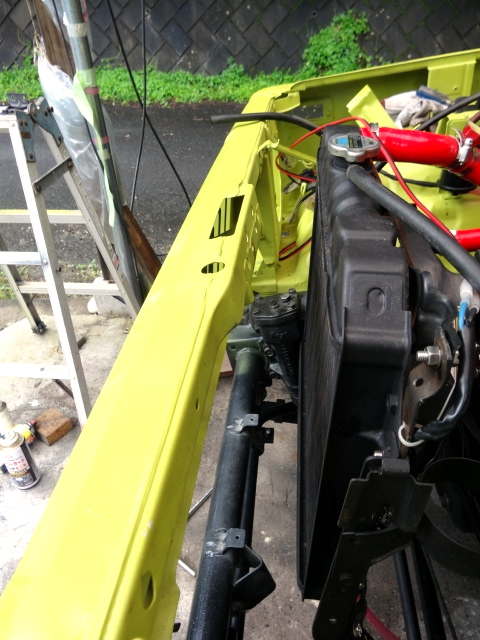 | エンジン・補器全てをJA71前期→後期にスワップしたので、後期で増えたデバイスを付ける穴が前期ボディには無いので、後期ボディに合わせて穴開け。 |