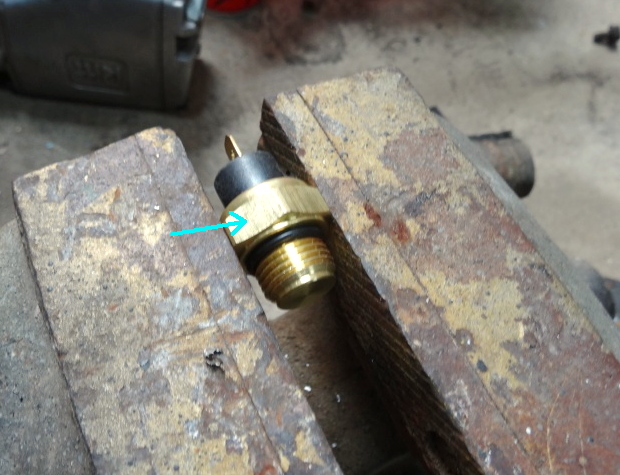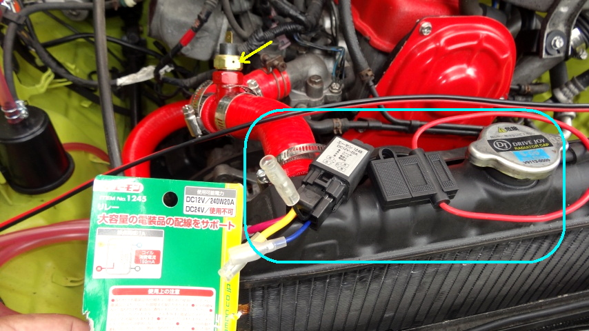 購入した電動ファンのサーモスイッチは、ボディアース仕様の1端子型。