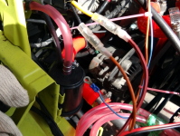 で、なんとなく開けやすそうなサーモスイッチにアースのネジ穴開けた。 |