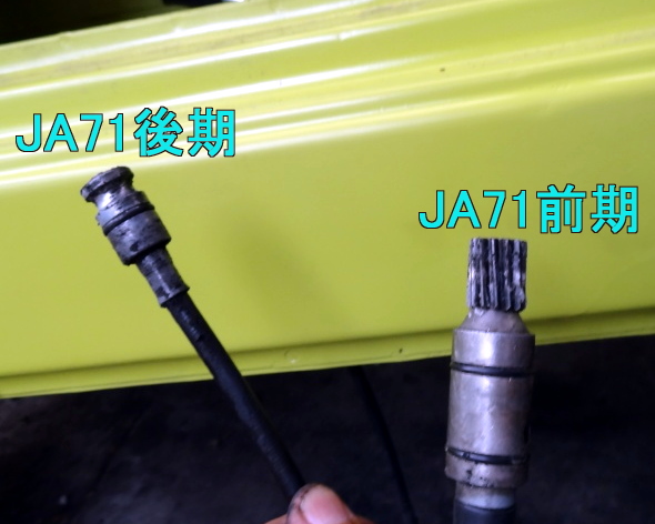 で、5号(JA71後期)に残してあったスピードメーターケーブルを取り外す。 |