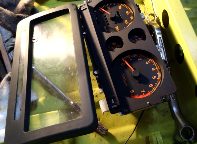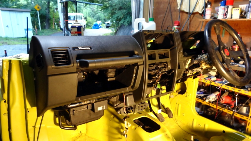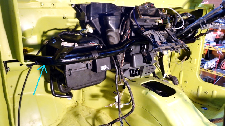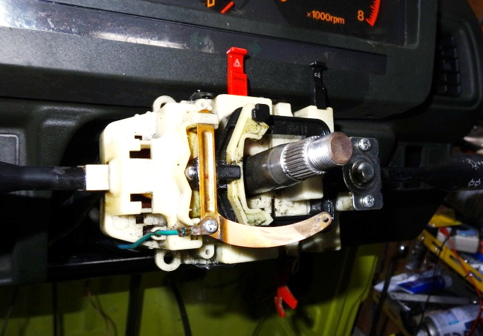 せっかく付けたダッシュパネルを外すより、ハンドル外す方が簡単なので外した。 |