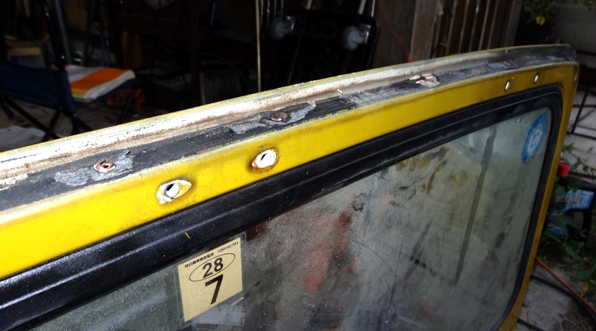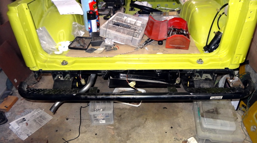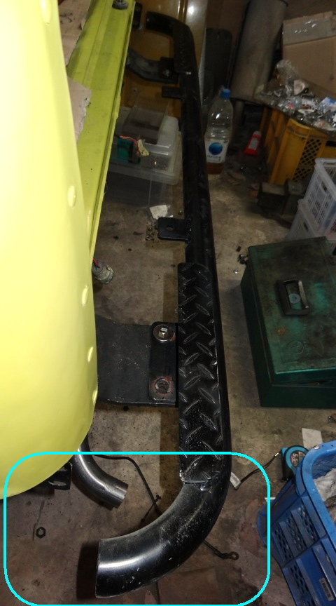 | この改装で、リヤゲートにLEDの丸テール化するので、今まで使ってた、純正テール入のパイプのリヤバンパーを、ジムニー2号(シエラ)で使っていた、タニグチのバンパーに替えるつもりだったんだけど..... |