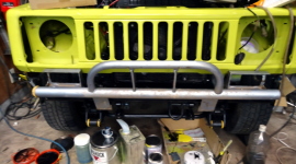 この改装で、ウィンチバンパーに替えるので、位置合わせ。